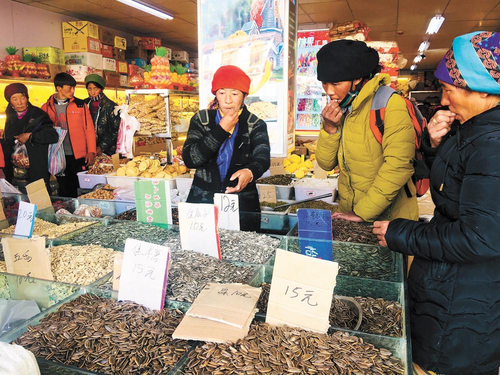 今年的藏历土狗新年和农历春节恰巧在同一天,因此拉萨的年味似乎更浓——大街小巷中人头攒动、熙熙攘攘,挑着各色年货游走叫卖的商贩穿梭其间,好不热闹。(格桑伦珠 刘枫 次珍 杨子彦 实习生 斯曲 摄)