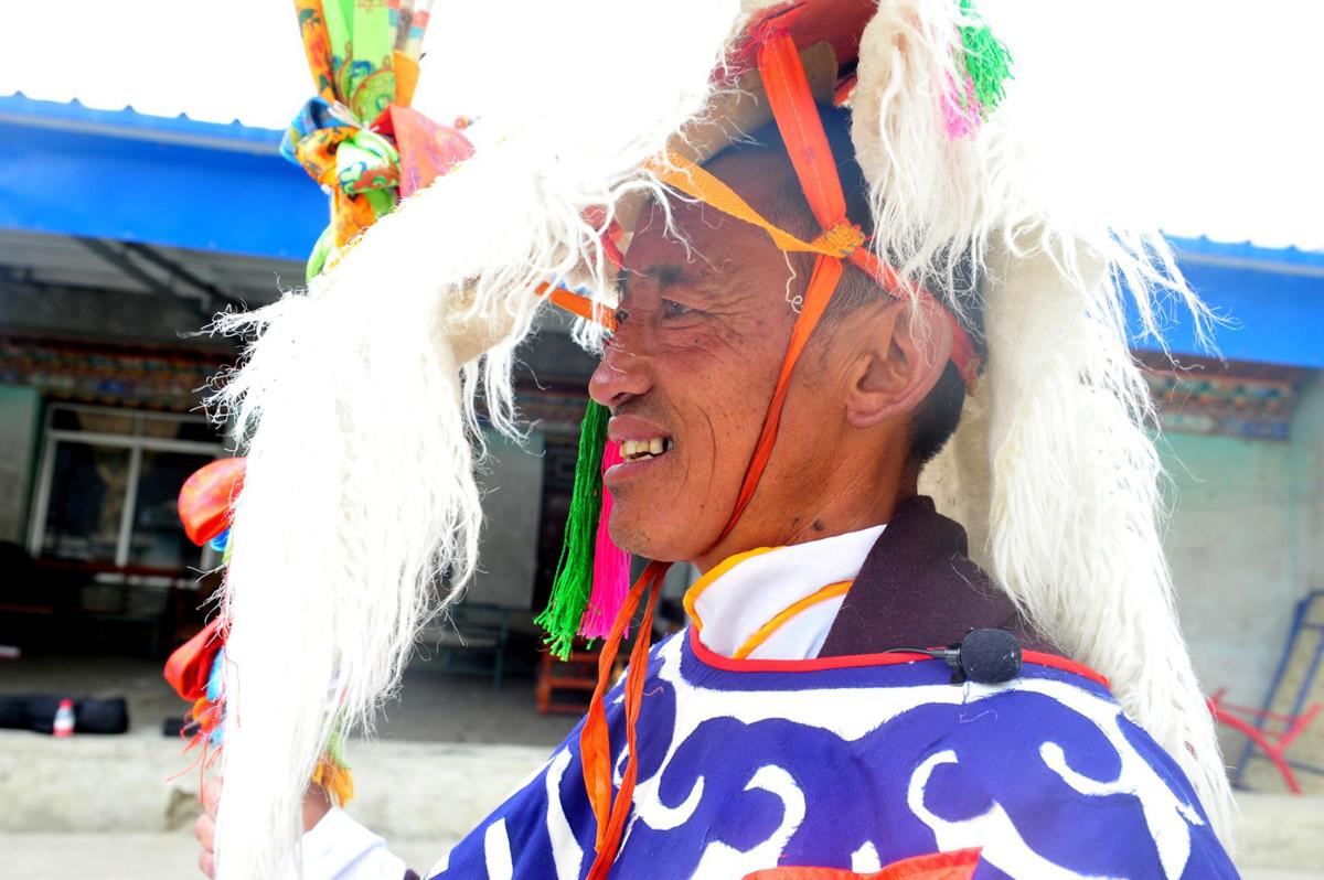 国家级宾顿藏戏传承人白玛提起裙角,轻轻一跃,苍穹下,起舞!传奇的宾顿藏戏就这样毫无保留地显现在我们面前。