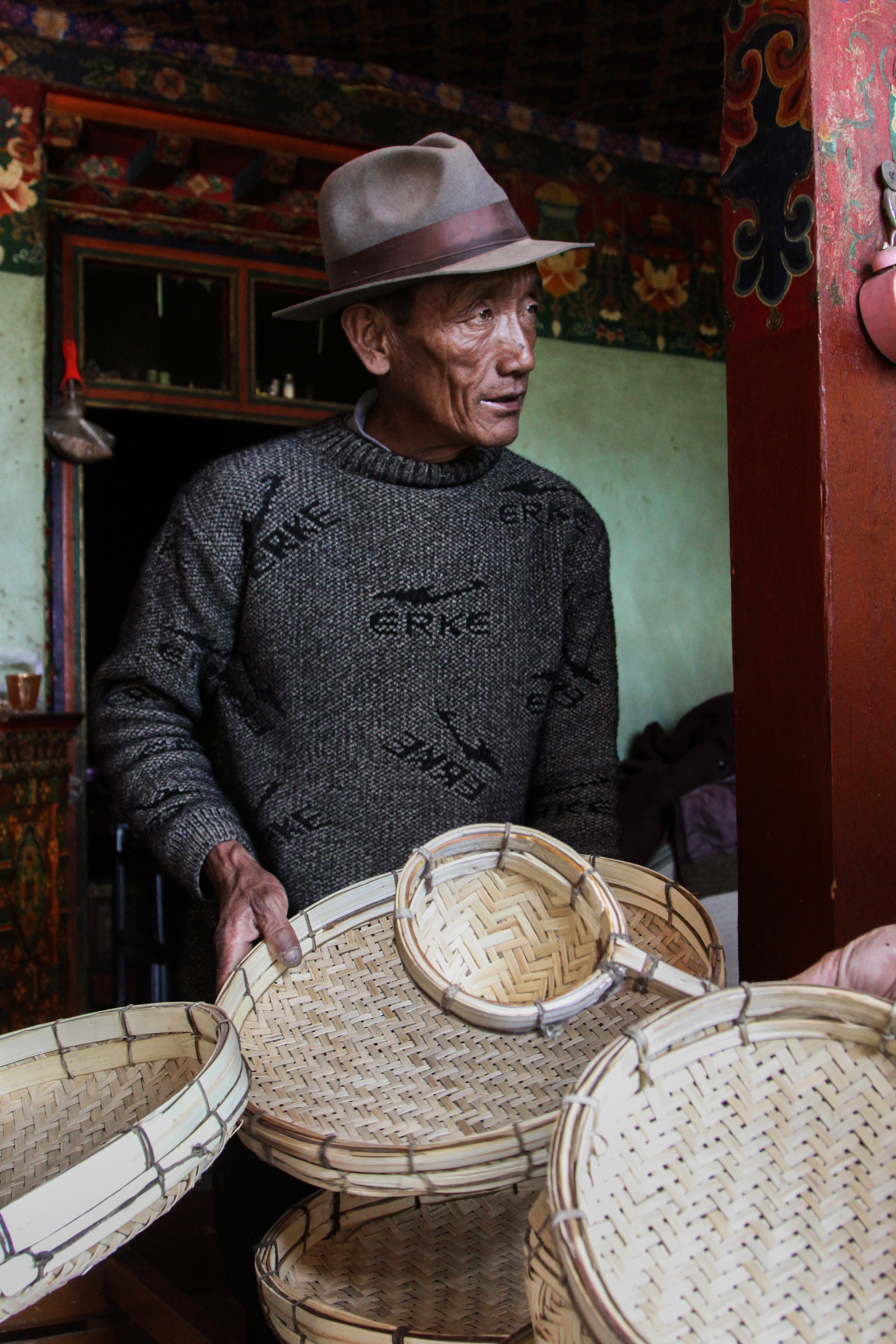 桑旦旺堆老人记不清色麦村什么时候有了柳条编织的传统,但在他爷爷一辈时已经有这个传统并将柳条编织的产品——“喜玛”销售到外地的习惯。