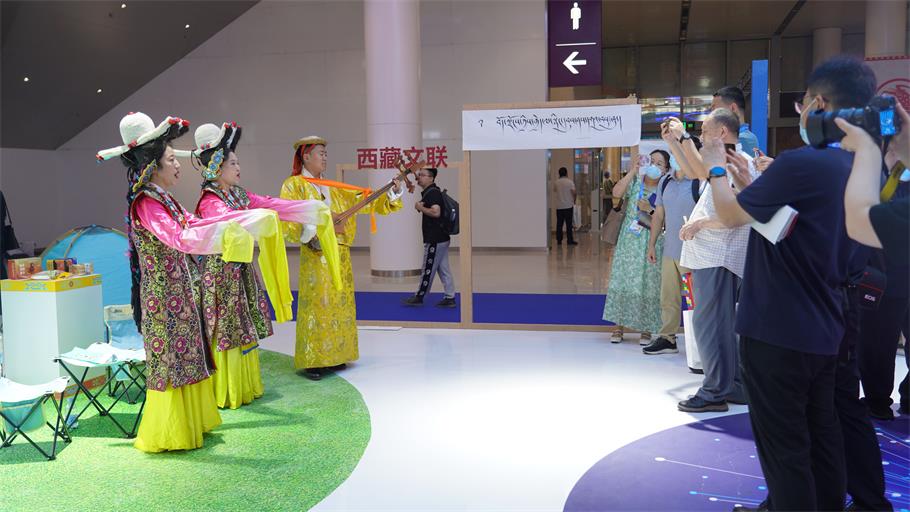 藏戏演出、歌舞表演、书法展示……今年,西藏展馆将传统民族文化“搬到”了展馆里,更融合了高科技数字化技术呈现,吸引了无数展商和当地市民前来观展。