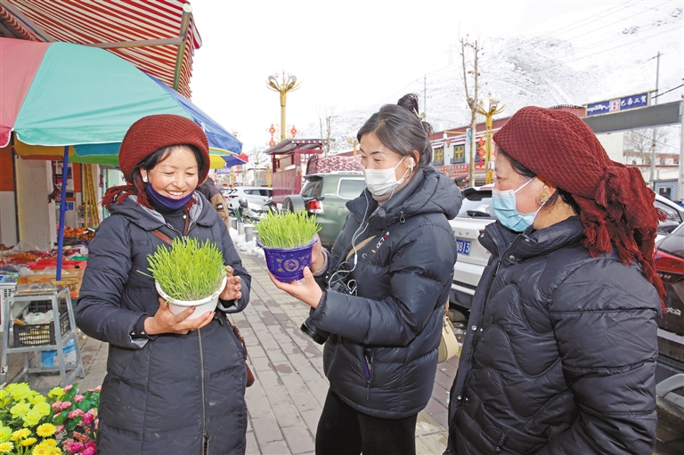 拉萨市民在挑选青稞苗。本网记者 格桑伦珠 摄