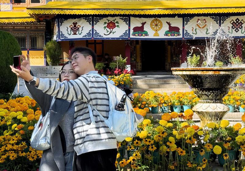 “十一”假期,拉萨罗布林卡秋意正浓,金黄的树林与古朴建筑相映成趣,吸引众多游客前来观光。园内,游客们或漫步于落叶之上,或驻足拍照,在绚烂秋色中享受假日闲暇。秋日静美与游人的欢声笑语交织,使这里成为假期休闲的热门选择,处处洋溢着欢乐祥和的节日气氛。