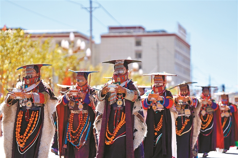 群众巡游活动中普兰县方队风采。