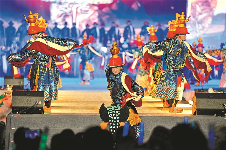 9月26日晚,狮泉河体育场化身光影的海洋,第九届象雄文化旅游节开幕式在此震撼登场。300余名演职人员演绎的13个特色节目,将“音、舞、诗、画”与阿里地域文化元素深度融合。演出紧扣弘扬传统文化与铸牢中华民族共同体意识,以多元叙事诠释“多元一体、和谐共生”的深刻内涵。