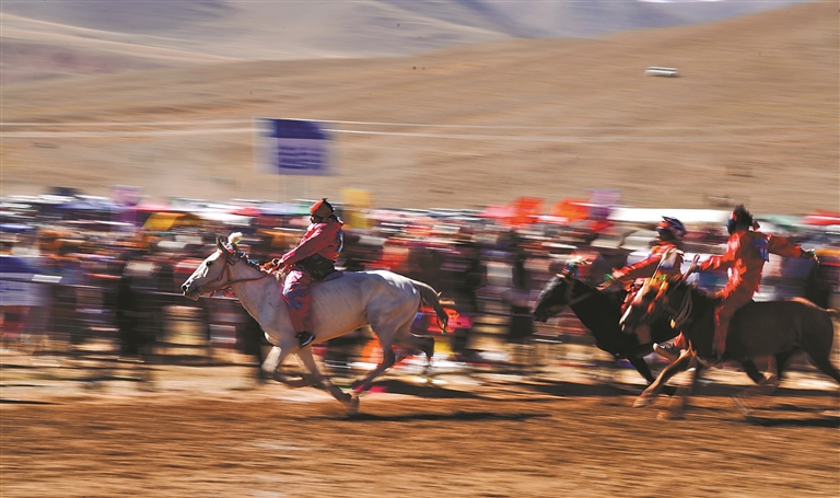 作为自治区级非物质文化遗产的“噶尔恰青”赛马活动,在噶尔县加木村赛马场激情开赛。赛马场观赛区座无虚席,欢呼声、呐喊声此起彼伏。本届赛马以“传承象雄文化·共赏马背豪情”为主题,汇聚阿里7县众多骑手竞技角逐。三天的比赛期间进行了大跑马、小跑马、大走马、小走马等比赛,上演了马背上的“速度与激情”。民间体育活动在体育场周边同步开展,拔河、摔跤等传统项目轮番上演,选手全力以赴、奋勇拼搏,围观群众的加油声不绝于耳,让大家在激烈的角逐中感受传统体育的独特魅力。