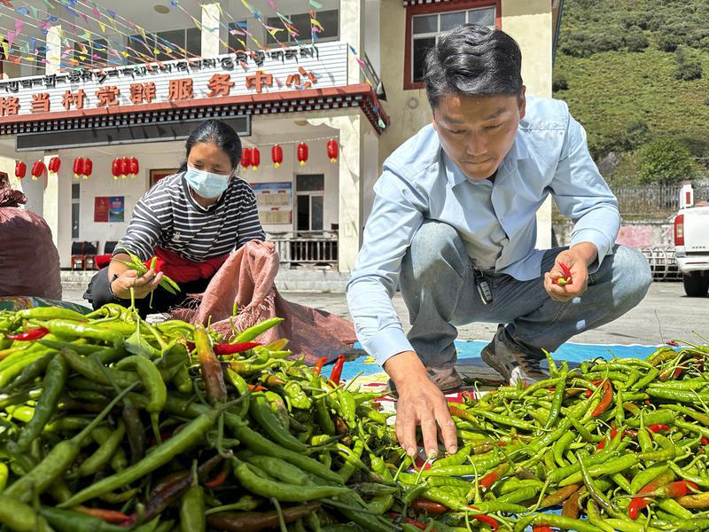 秋日的墨脱县格当乡,辣椒田火红一片,饱满的格当原种辣椒挂满枝头,村民们背着竹篓穿梭其间,指尖翻飞间将辣椒采收装袋。截至10月15日中午2点,格当乡辣椒种植专业合作社已集中收到新鲜辣椒五千斤。格当辣椒作为本地优质特色农产品,辣度高、果肉厚实,但曾因品种退化、产量不稳让群众种植积极性受挫。去年,格当乡党委牵头的辣椒合作社聚焦“稳收益、强信心”,在完成首批原种辣椒提纯复壮种植后,严格按照“账目公开、盈利共享”原则兑现分红,80户社员户均分红超一万元。今年开春,村民主动申请扩种,种植面积较去年增长近一倍,原本观望的10来户村民也纷纷加入合作社。从“分红定心”到“技术护航”,格当乡党委用党建引领激活本土原种辣椒产业潜力,既保住了特色农产品的本土基因,又让群众尝到了产业发展的甜头,走出了一条“党建强、产业兴、百姓富”的乡村振兴路。
