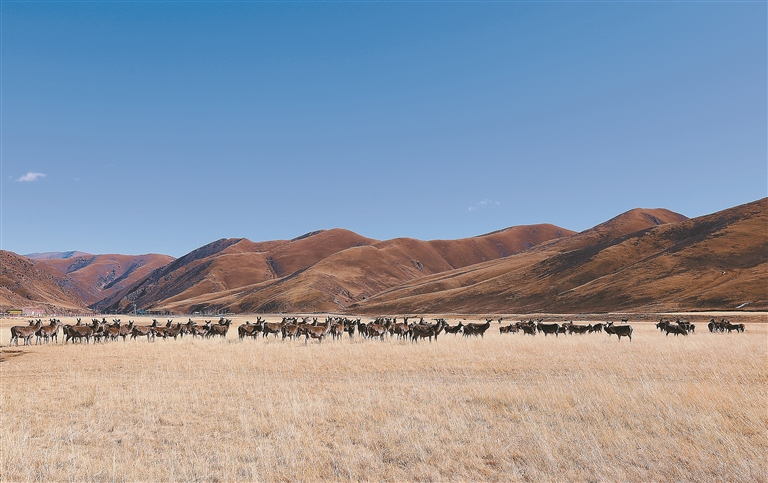 昌都市类乌齐县保护区内的马鹿。本网记者 白玛泽旺 摄