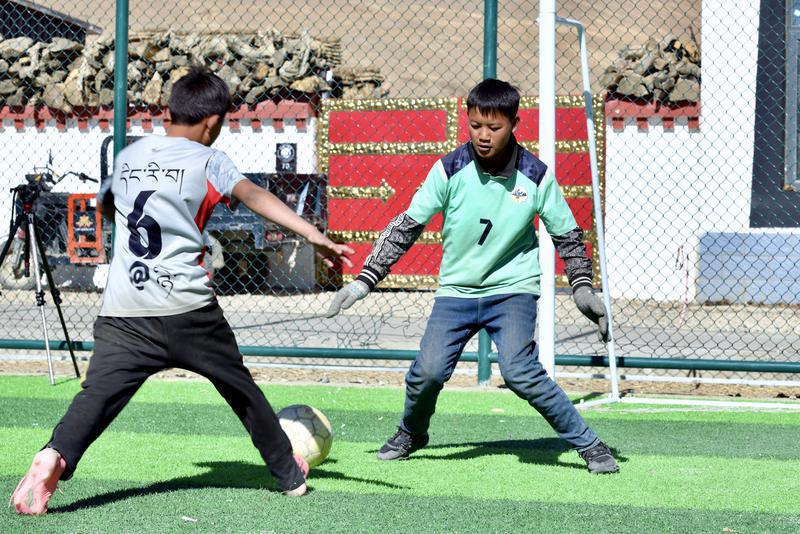 隆冬时节,海拔4000多米的定日县长所乡森嘎村,不见寒冬萧瑟,反是一派热气腾腾的景象。崭新的标准化足球场上,一颗足球在孩子们脚下灵动飞旋,清脆的欢笑声穿透高原凛冽的寒风,响彻澄澈晴空。“这是我们村里第一个真正的足球场!”正在读初一的阿旺洛旦涨红了脸,兴奋地呐喊。谁能想到,就在2025年1月7日,这里还满是地震后的断壁残垣。如今,平整的操场成为孩子们奔跑追逐的乐园。寒风挡不住蓬勃的朝气,每一次传球、每一次射门,都迸发出满满的活力。场边,孩子们的目光紧随足球移动,加油声、喝彩声此起彼伏。足球不仅是一项运动,更成为连接彼此、凝聚人心的纽带。奔跑的身影、绽放的笑容,映照出这片土地重生的生机与希望。崭新的足球场,承载着崭新的开始。在这片焕然一新的土地上,足球与笑声一同飞旋,森嘎村正带着蓬勃的朝气与坚实的希望,迈向更灿烂的未来。
