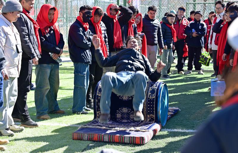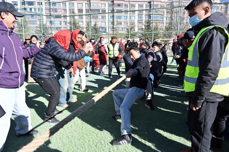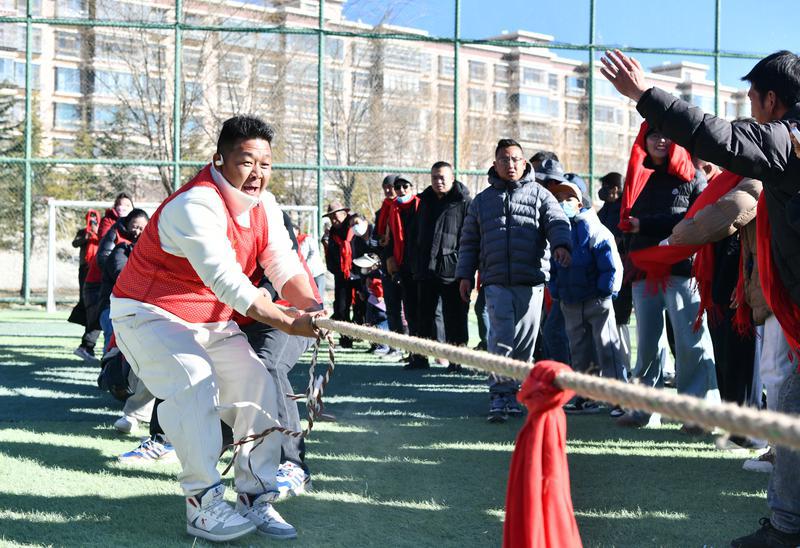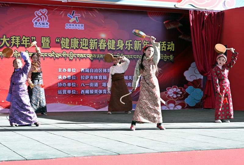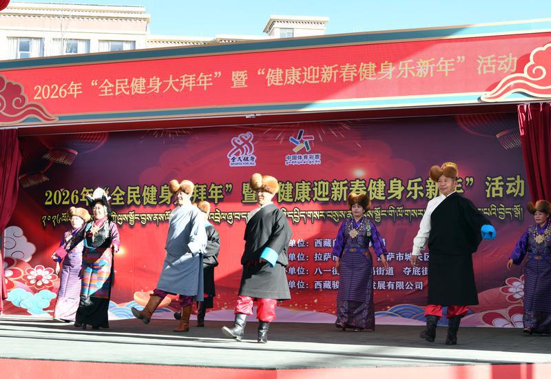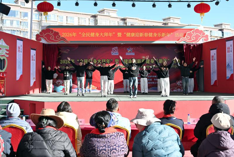 为深入实施全民健身国家战略,营造喜庆祥和、健康向上的新春佳节和藏历新年氛围,2月4日上午,由西藏自治区体育局主办,拉萨市体育局、城关区人民政府承办的2026年“全民健身大拜年”暨“健康迎新春,健身乐新年”活动在拉萨市城关区八一街道吉曲雄社区中华文化公园开幕。本次“全民健身大拜年”活动内容丰富多彩,涵盖民俗体育趣味赛、体育技能公益培训、新春体育展示、线上健身挑战、文化成果展览以及健康宣传服务等多个板块。既有拔河、藏骰、吉韧等传统体育项目,也有趣味亲子运动等现代趣味项目;既有专业的足球、篮球、羽毛球等技能教学,也有大众喜闻乐见的锅庄舞、棋类活动;同时安排了健康咨询、免费送医送药等服务,全方位满足群众多元化健身与健康需求。