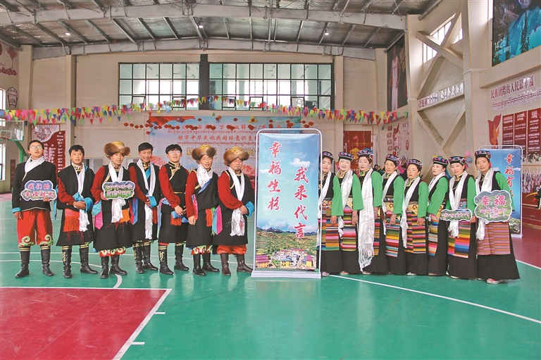 洛扎县生格乡演出人员在文艺活动现场合影留念。