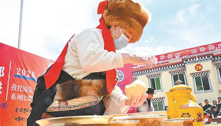 洛隆县群众展示酥油制作技艺。记者 贡秋曲措 摄