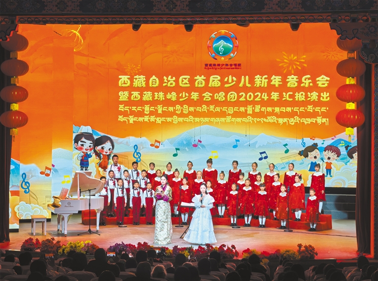 12月28日下午,由自治区党委宣传部、西藏自治区文明办主办的自治区首届少儿新年音乐会暨西藏珠峰少年合唱团2024年汇报演出在自治区群众艺术馆举行。演出中,孩子们身着盛装,精神饱满,以澄澈的嗓音、活泼灵动的表演,为现场观众献上了一场难忘的音乐盛宴,用歌声与大家共同迎接新年的到来。