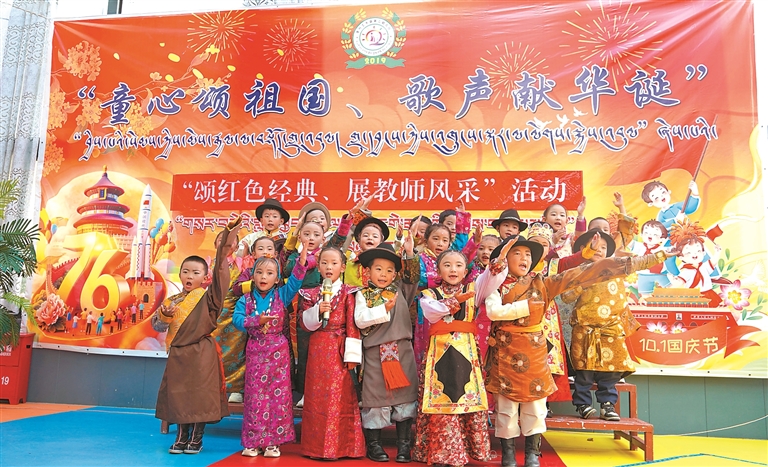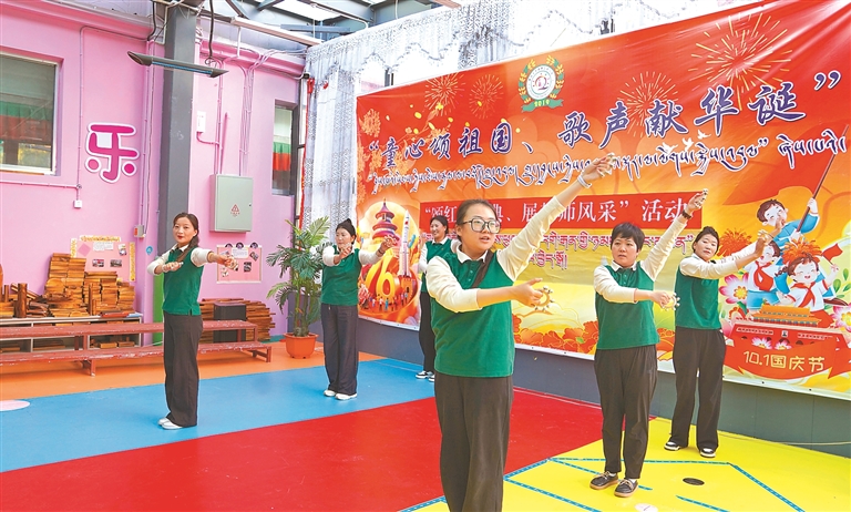 近日,拉萨市墨竹工卡县第二幼儿园党支部举办红歌传唱暨教师器械操展示活动,全场挥旗齐唱《今天是你的生日》。党支部负责人表示,将持续探索推动党建与学前教育同频共振。