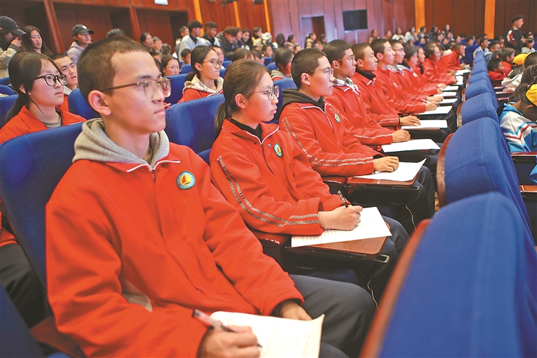 学生们在认真聆听讲座。记者 格桑伦珠 摄