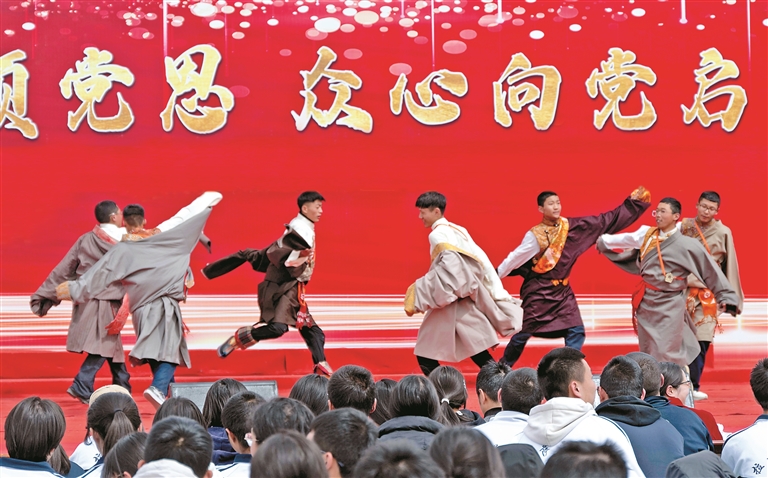 近日,拉萨市第三高级中学举办第二届“红歌嘹亮颂党恩 众心向党启新程”主题活动,通过主题演讲、民族舞蹈、互动知识竞赛等环节深入传承红色基因,厚植青年学生爱党爱国爱社会主义情怀,展现昂扬向上的精神风貌。