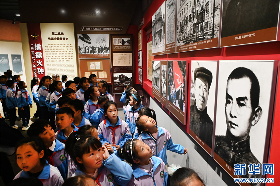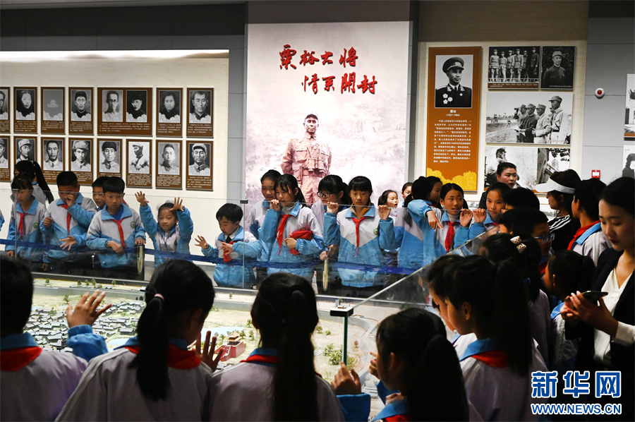 4月1日,河南省开封市的学生在革命烈士事迹陈列馆进行参观。