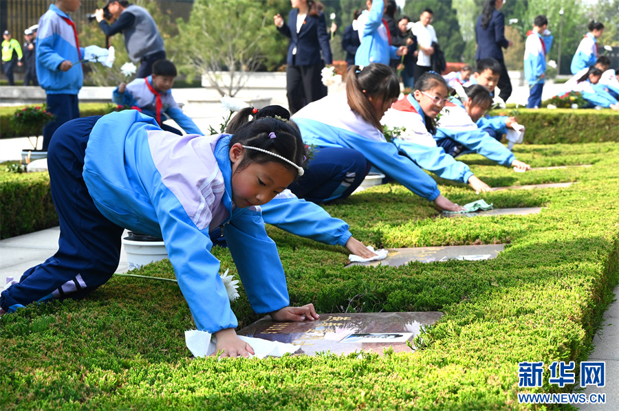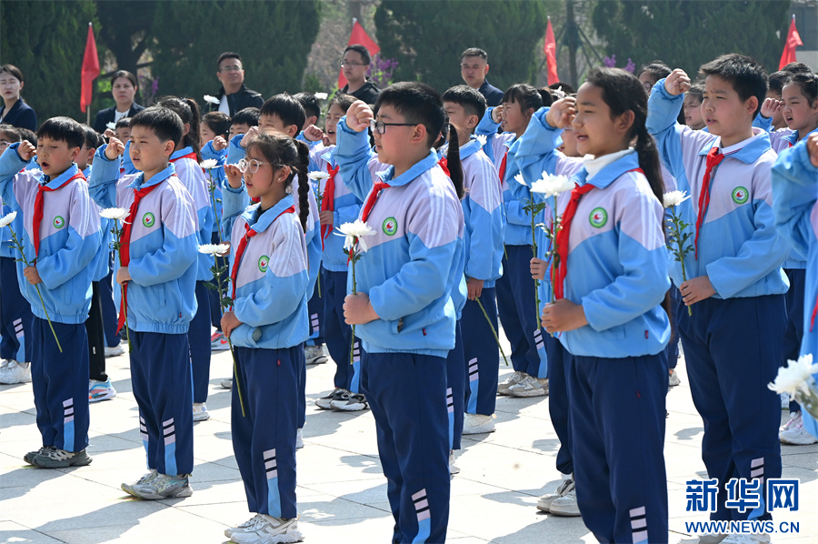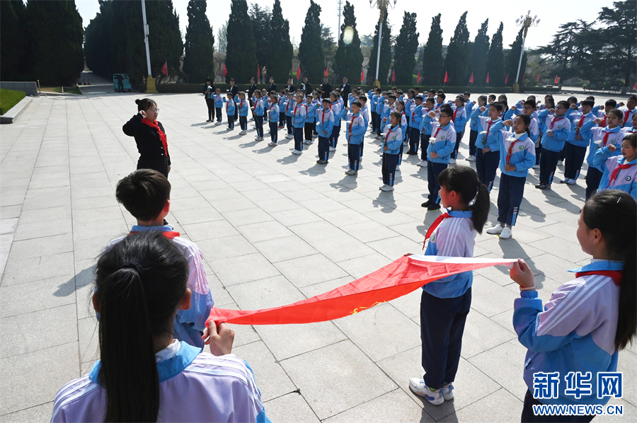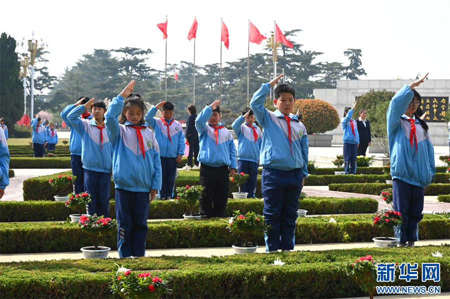 清明节将至,河南省开封市各中小学校组织学生走进革命烈士陵园,重温先烈事迹,接受爱国主义教育。新华网发(李俊生 摄)