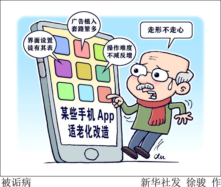 一些手机APP的适老化改造浮于表面。工信部发布的《移动互联网应用(APP)适老化通用设计规范》对手机APP适老化改造有明确指导规范。但记者发现,不少手机APP的“关怀版”一级界面字体变大,点击进入二级界面,页面布置、字体却与正常版无异,“换汤不换药”仍让老人无所适从。