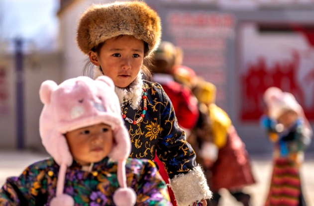 孩子们换上新装过新年。