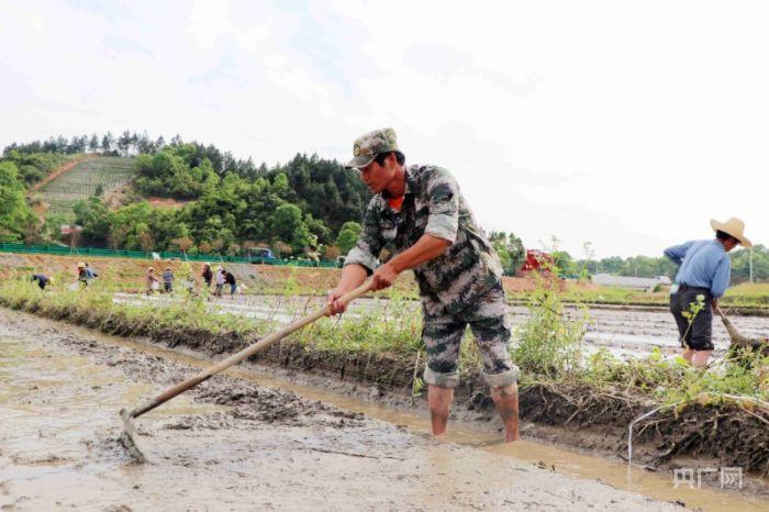 张祖权在田埂除草(央广网发 欧阳林摄)