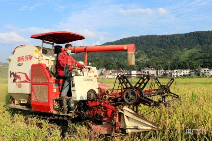 稻谷收割(央广网发 欧阳林摄)