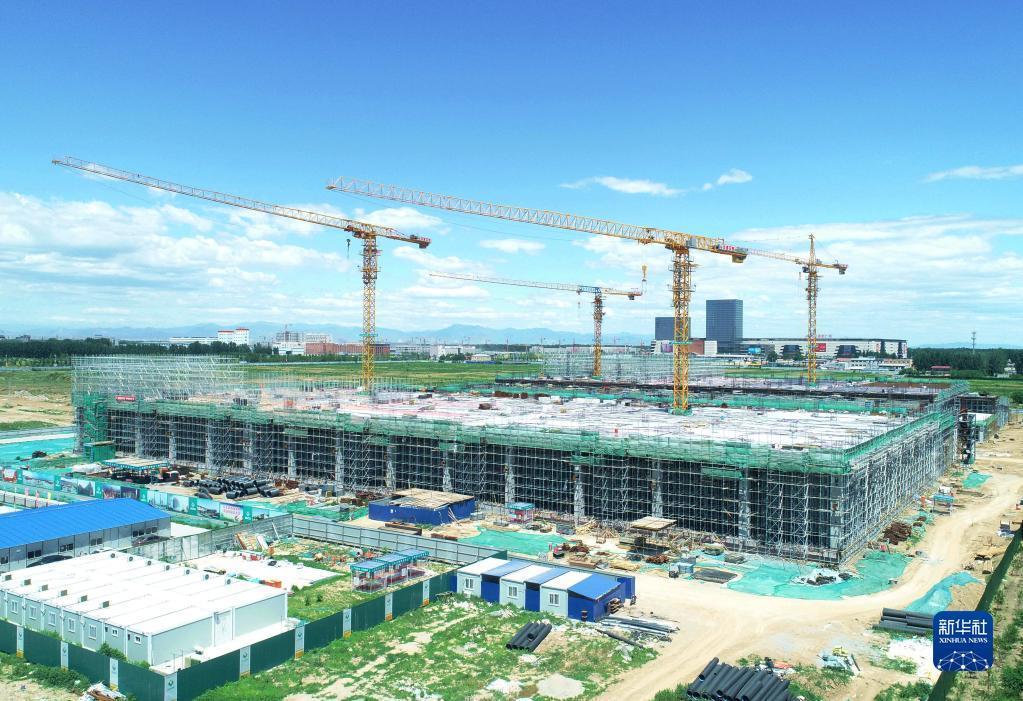 这是6月6日拍摄的河北省固安县大清河园京东智能物流产业园建设现场(无人机照片)。新华社记者 骆学峰 摄