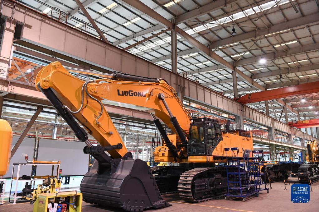 这是广西柳工集团有限公司生产厂房内正在组装的机械(2021年4月26日摄)。新华社记者 曹祎铭 摄