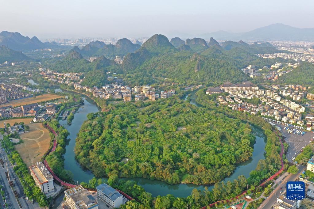 广西桂林市城区风光(4月10日摄,无人机照片)。新华社记者 周华 摄