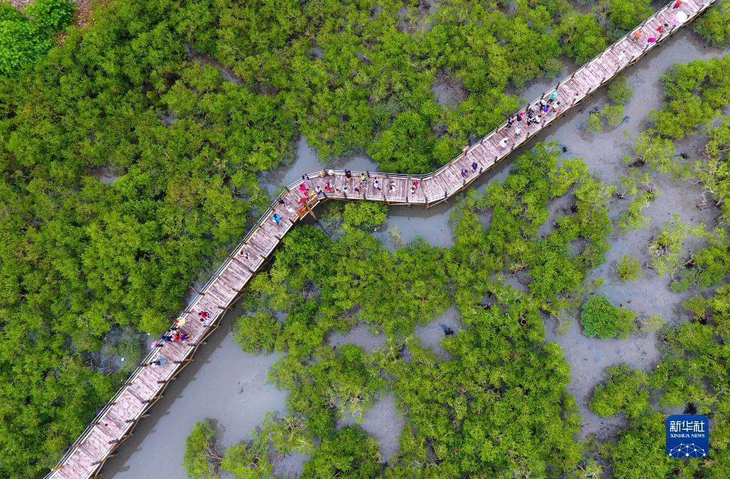 这是在广西北海市金海湾红树林生态休闲区拍摄的红树林(2017年8月23日摄,无人机照片)。新华社记者 黄孝邦 摄