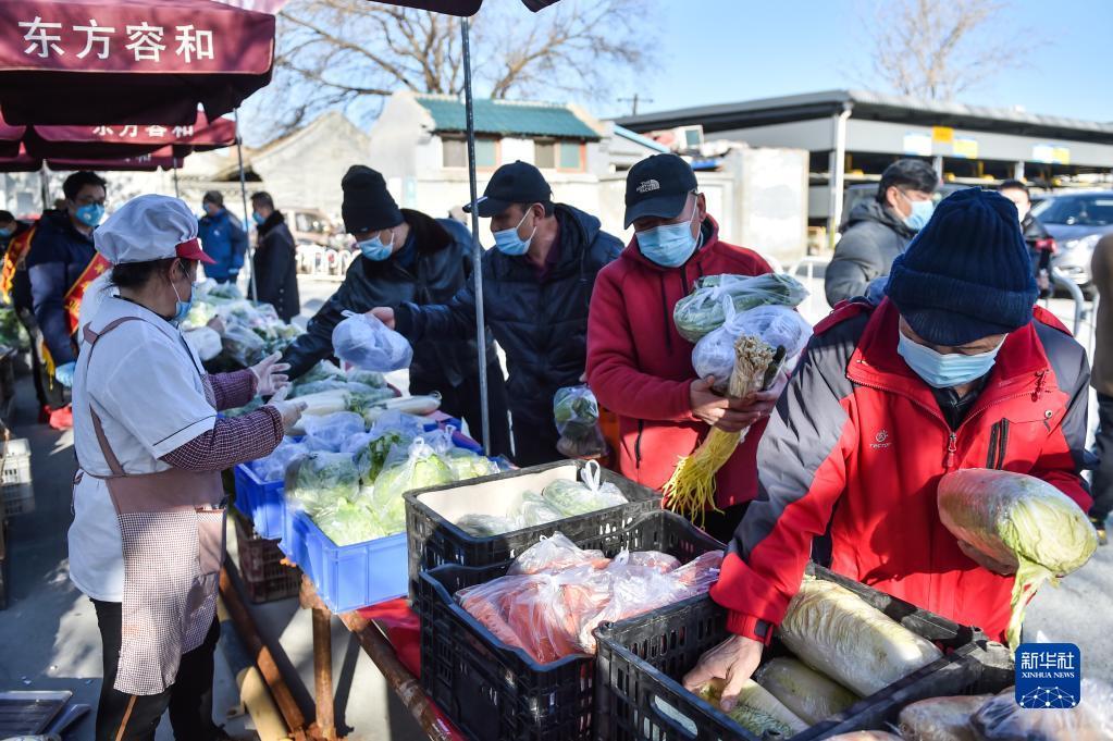 北京前门平房区居民在选购蔬菜(2020年3月13日摄)。新华社记者 彭子洋 摄