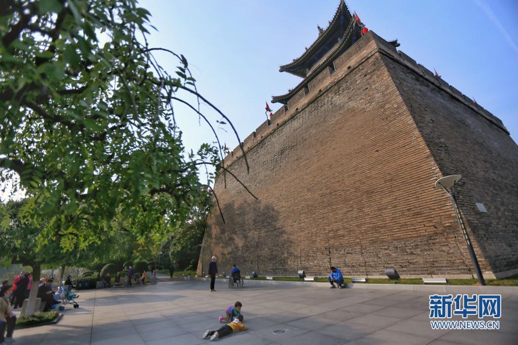 游客在西安城墙浏览。新华社记者 刘潇 摄