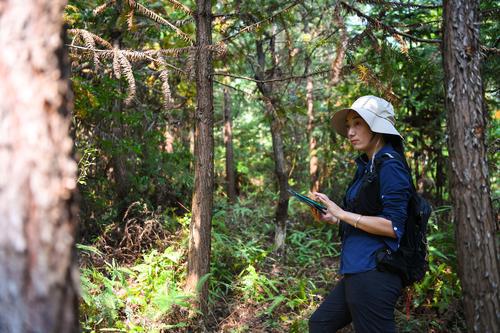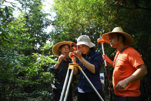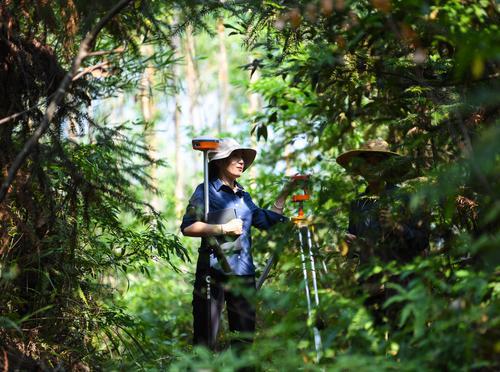 9月22日,白拉曲珍和同事在位于广东韶关乐昌市张溪村的生态监测样地工作。