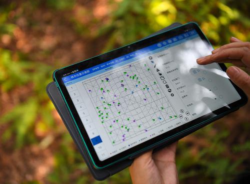 9月22日,在广东韶关乐昌市张溪村的生态监测样地,白拉曲珍查看软件数据。