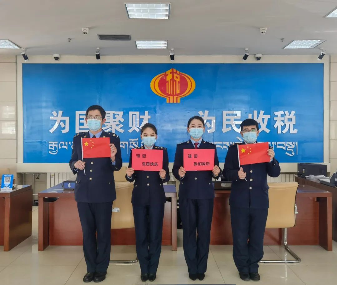 为热烈庆祝中华人民共和国成立73周年,弘扬爱国主义精神和伟大抗疫精神,增强税务干部不忘初心、砥砺奋进的内生动力,西藏各级税务部门采取多种形式开展“为祖国庆生 与国旗合影”活动,以此表达对祖国母亲的深深祝福。