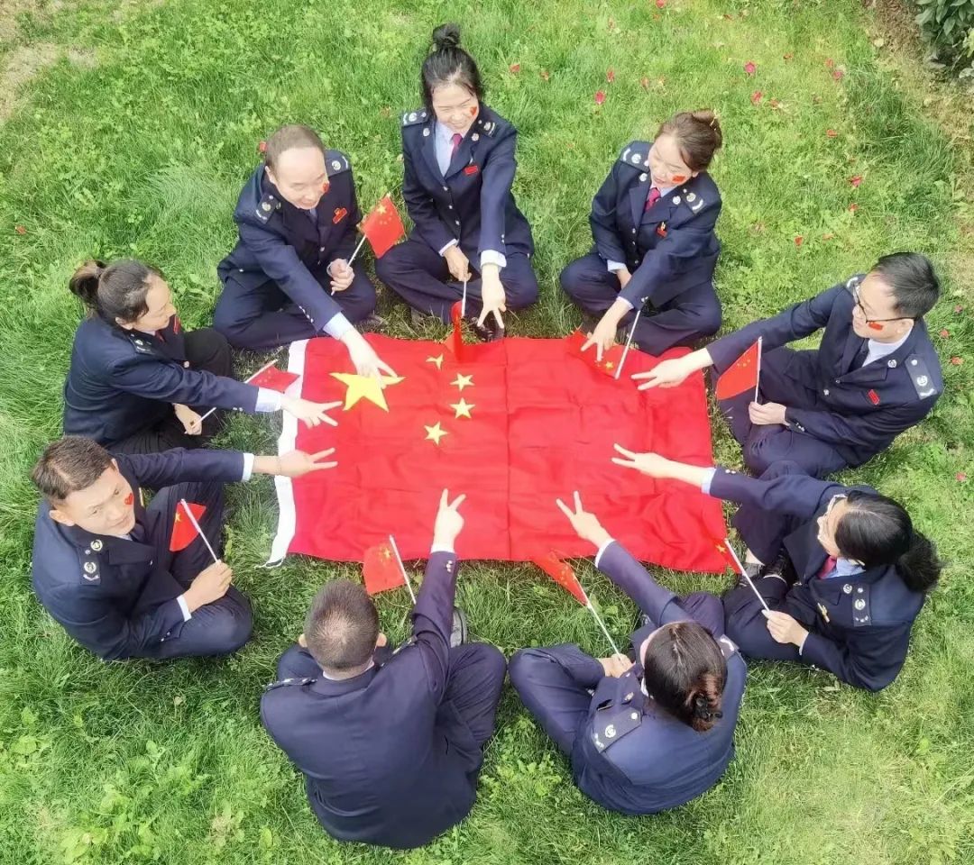 国家税务总局林芝市税务局组织青年干部与国旗合影,向祖国母亲深情告白,表达对祖国的赤诚之心与无限热爱。