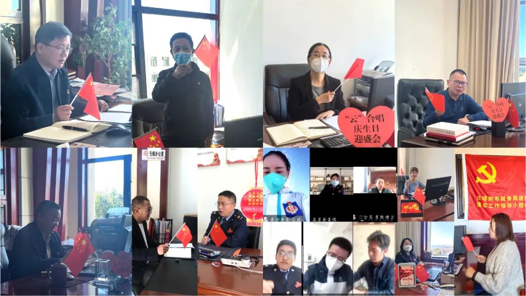 国家税务总局日喀则市税务局组织开展以“‘云’合唱 庆生日 迎盛会”为内容的“云上”主题党日活动,云端唱响国歌,寄语未来新征程,献礼祖国华诞。