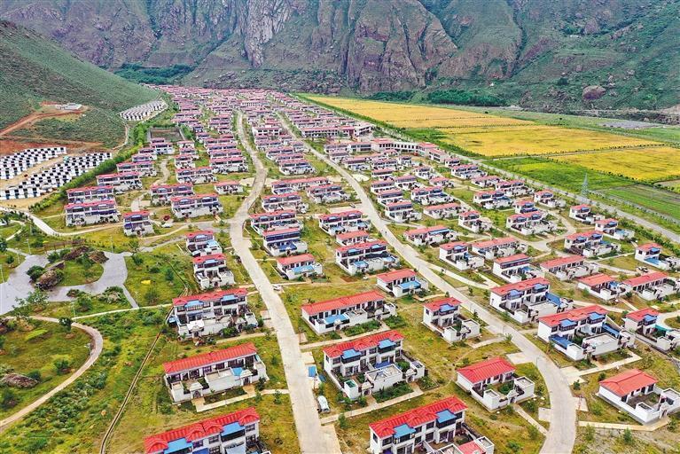 易地搬迁脱贫一批。2016年以来,累计投入198亿元,建成964个易地扶贫搬迁安置点,26.6万人搬迁入住。图为西藏自治区加查县共康村易地扶贫搬迁点。
