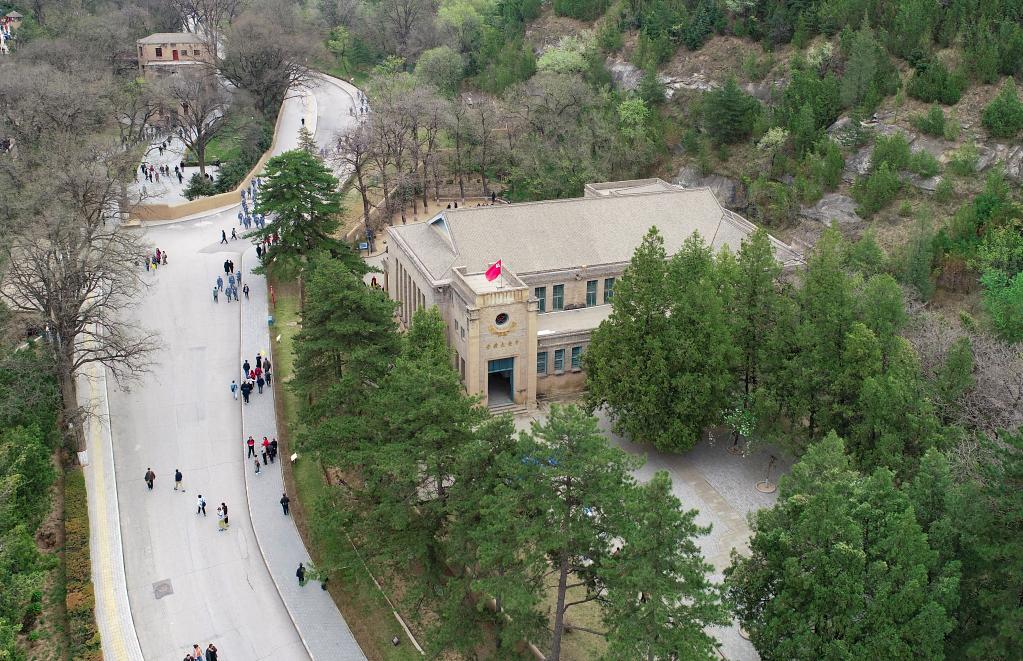 这是2021年4月21日拍摄的杨家岭革命旧址中央大礼堂。新华社记者 张博文 摄