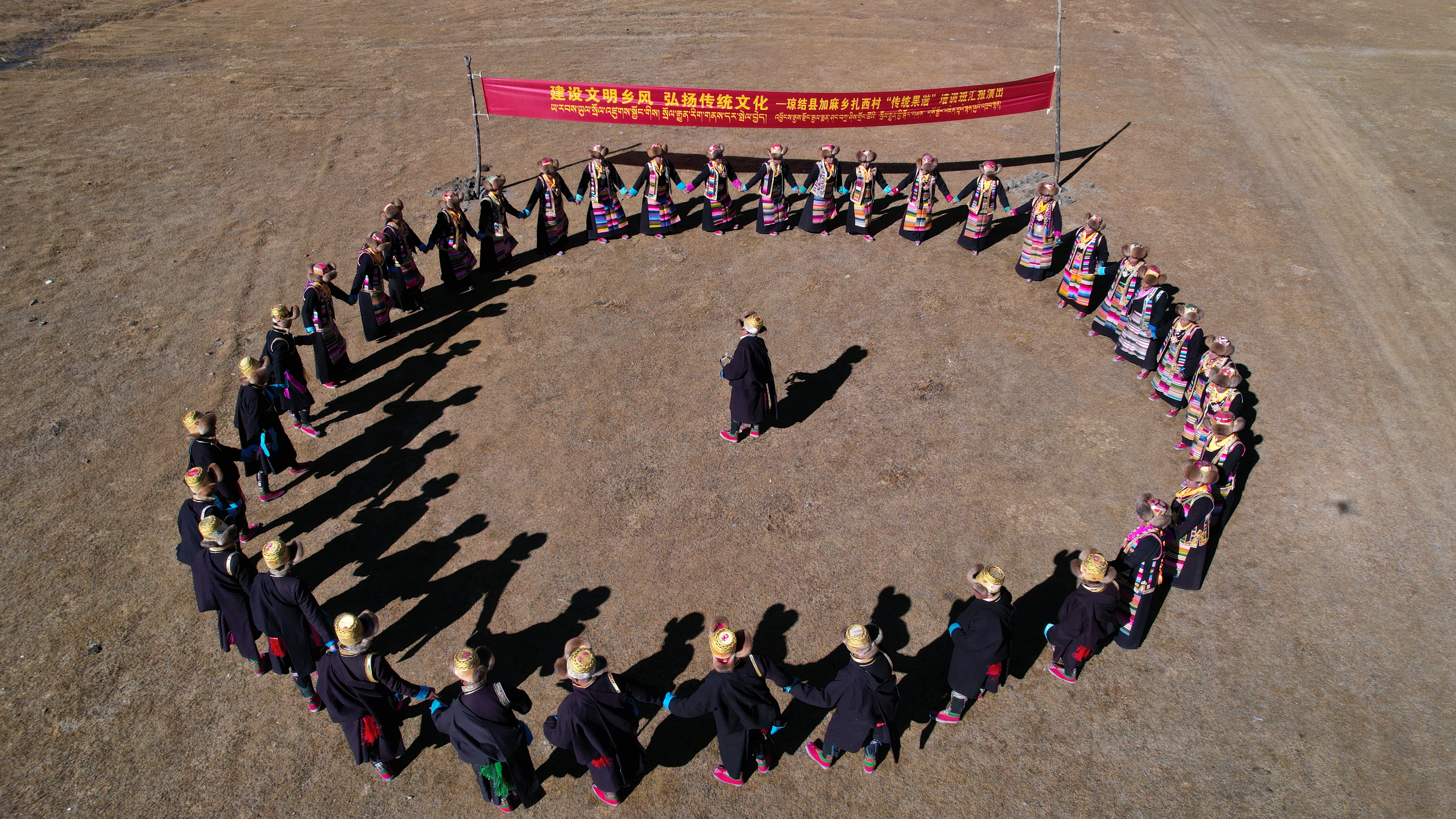 图为琼结县扎西村“传统果谐”汇报演出现场。