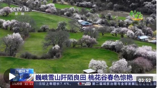 总台记者 普布次仁:花开时节,花海连绵五十余公里。在雪山脚下,这里的桃花会随着海拔气候的起伏变化,从每年的3月中下旬开始依次绽放,层层渐染,持续月余。田野新绿、雪山巍峨,间或独具特色的村落、民居,让人仿佛置身世外桃源山水画卷。桃花谷独特迷人的风景惊艳了春天,也让这里成了赏花旅游的重点区域。