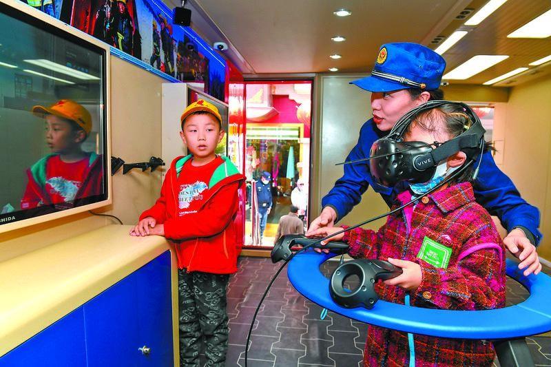 消防队员借助VR模拟系统,为孩子们讲解防火防灾知识。记者 丹增群培 摄