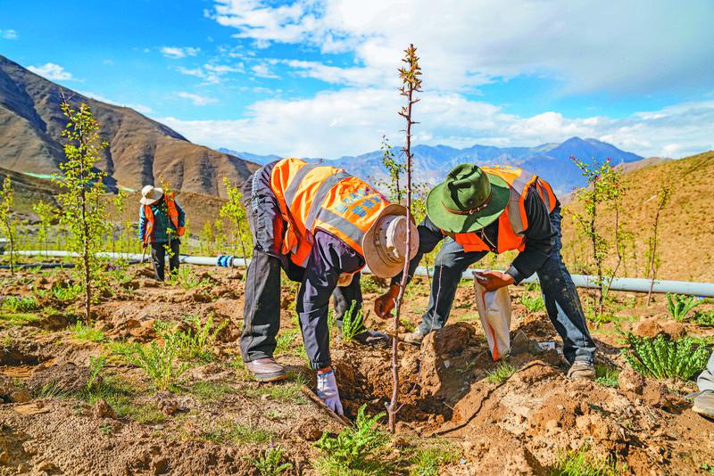 拉萨南北山绿化工程是西藏规模最大的营造林建设工程。2022年,拉萨市完成造林绿化55.87万亩,林草生态建设促进群众就业超过168万人次。