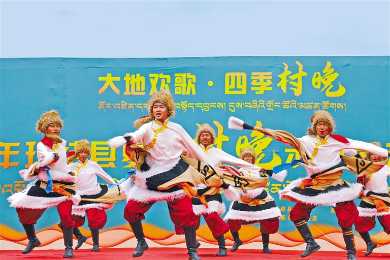 图为桑日县艺术团在表演舞蹈《幸福牧民》。伦珠泽仁 记者 白玛泽旺 摄
