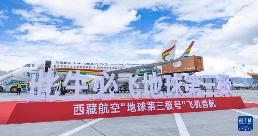8月25日,以“地球第三极号”冠名的西藏航空TV9851次航班从成都飞抵拉萨贡嘎国际机场。此活动旨在推动西藏特色产业发展,同时吸引更多人走进西藏、发展西藏、宣传西藏。