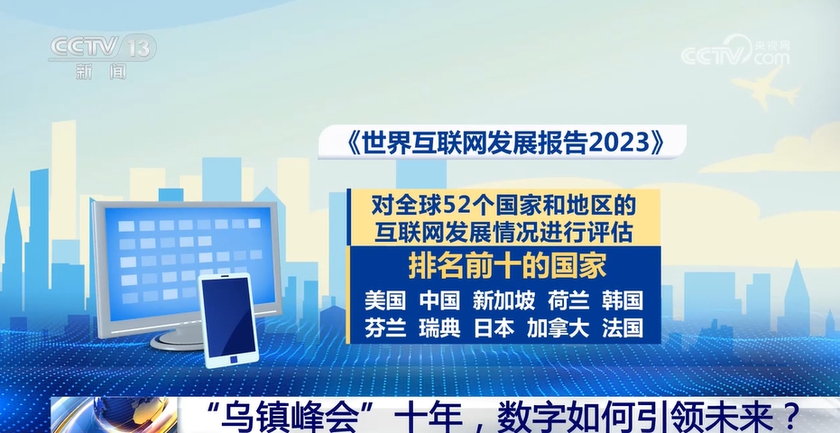同时发布的 《世界互联网发展报告2023》中也显示,数字经济成为多国经济复苏的强劲引擎。报告对全球52个国家和地区的互联网发展情况进行了评估,今年排名前十的国家为美国、中国、新加坡、荷兰、韩国、芬兰、瑞典、日本、加拿大、法国。