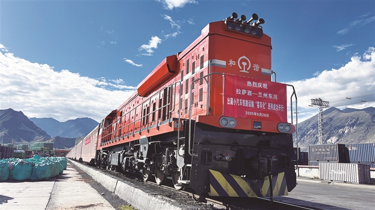 9月29日零时22分,首趟出藏小汽车铁路运输“客车化”班列从拉萨西站铁路货场缓缓驶出,标志着出藏小汽车铁路运输进入高效率运行新阶段。这趟班列共搭载32台出藏小汽车,将于10月1日10时50分抵达兰州北站后,编挂最近的货车至兰州东川站,全程运输时间控制在60小时以内。
