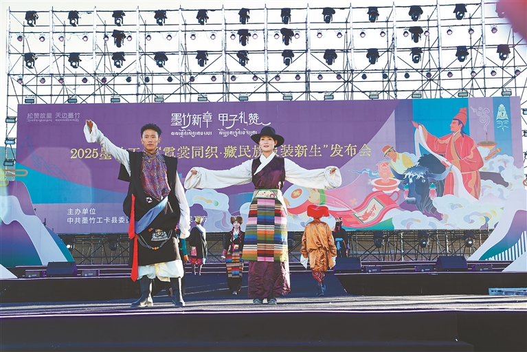 模特在2025墨竹工卡“霓裳同织·藏民族服装新生”发布会上展示墨竹服饰。