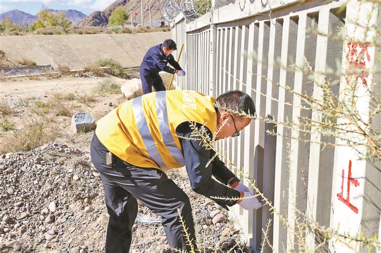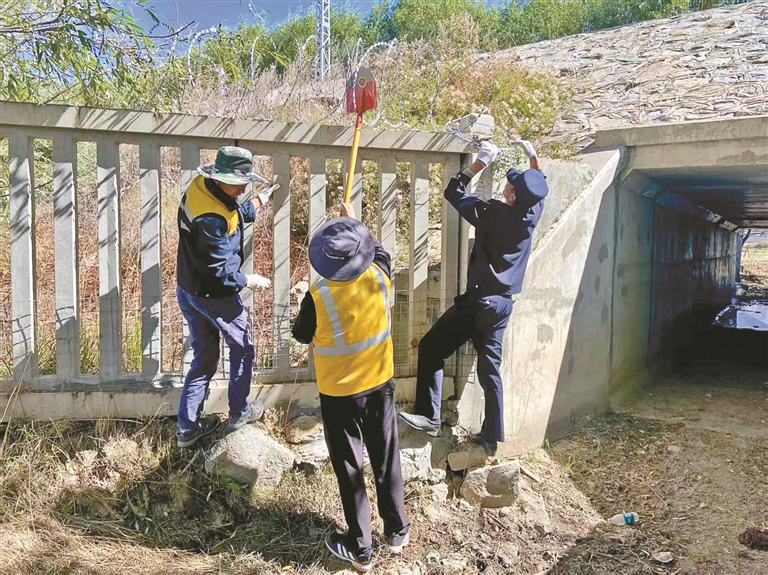 据统计,当天共排查线路93.336公里,发现并现场处置各类栅栏隐患52处,有效提升了防护栅栏的整体防护效能,为拉日铁路的安全运行提供了坚实的屏障。