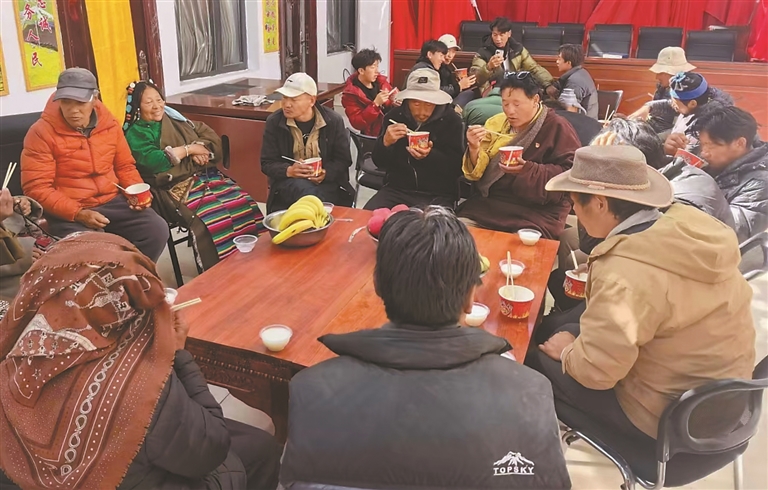 图为巴青县干部与群众在村级活动场所同下厨、共进餐。