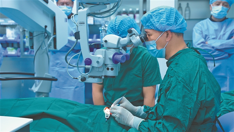 图为医护人员使用飞秒激光设备开展手术。记者 刘斯宇 摄